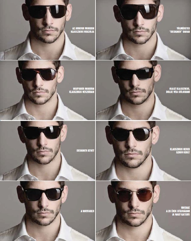 A divat a férfiak világában is megjelentette a túldimenzionált és ívelt, az arcot szinte teljesen eltakaró, valamint a tükörüveges és formabontó darabokat. Ezeket érdemes megfelelő távolságtartással kezelni, a jó stílus elengedhetetlen része a tradíció, érdemes szezonokon átívelő vonalvezetésű, klasszikus és feltétlenül jó minőségű napszemüveget beszerezni.
